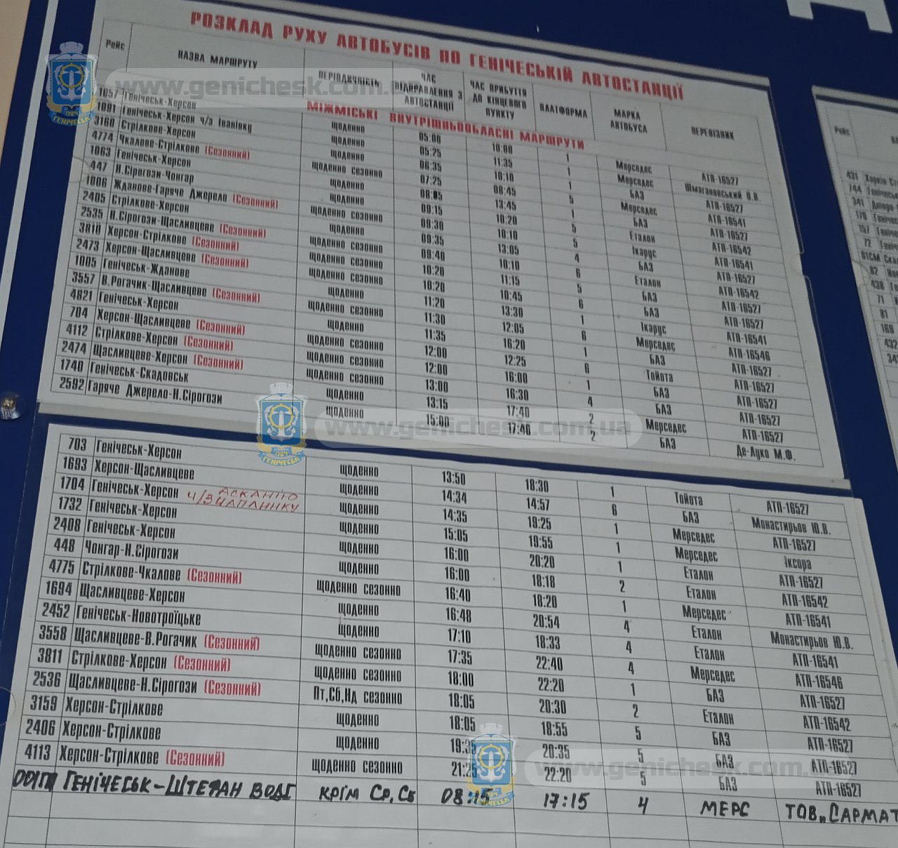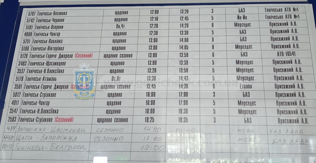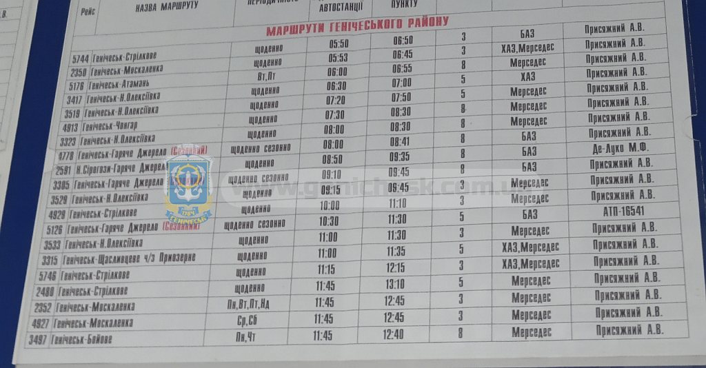 Расписание автобусов Генической автостанции в октябре 2020