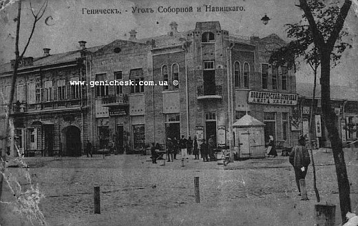 второго десятилетия двадцать первого века в Геническе это был угол ул.Ленина (Центральная) и ул.Воровского (Соборная)