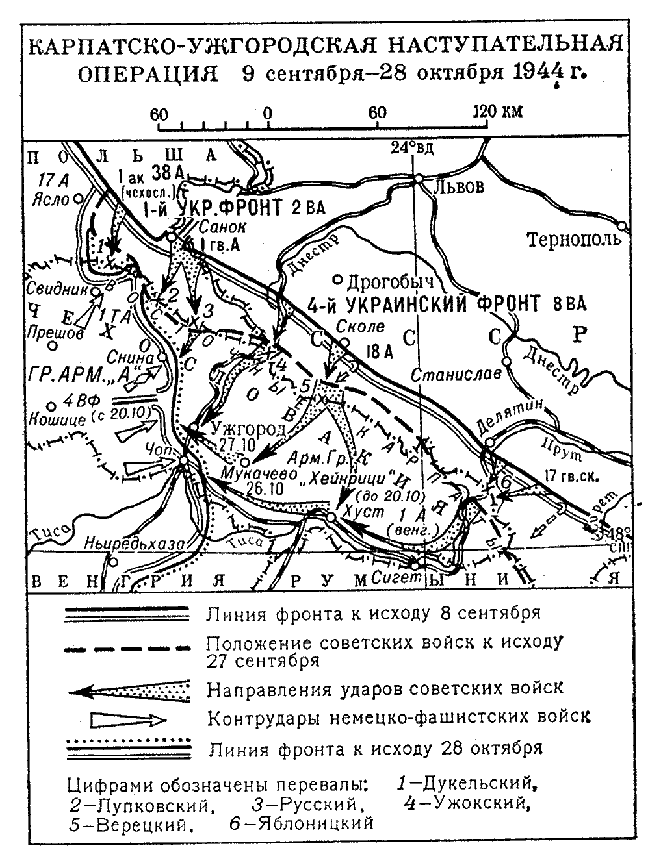 Завершила освобождение Украины Карпатско-Ужгородская операция (9 сентября–28 октября 1944 г).