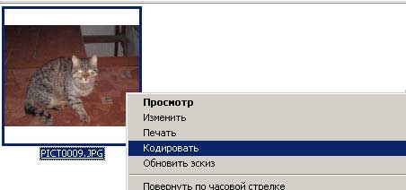 Всё готово для того, что б начать процесс шифрования. Щёлкните правой кнопкой на файле или группе файлов для вызова контекстного меню и выберите пункт «Кодировать» (Рис 4). Программа зашифрует файл. Для обратной дешифровки, необходимо просто открыть файл.