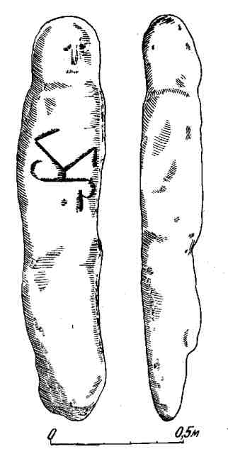 Ледве окресливши на стелі зображення очей, носа і рота, стародавній майстер найбільш старанно наніс зображення знака. Цей знак, безперечно, належав знатному сарматові. Сама ж стела колись увінчувала могилу з похованням цього сармата. Судячи з того, що цей знак зустрічається на кількох пам'ятках Північного Причорномор'я з кінця II століття нашої ери, можна припустити, що власником знака був один з алан-ських вождів, які, об'єднавшись на той час у племінний союз, посіли панівне становище серед сарматських племен та сусідніх народів. Самі ж алани — сарматське плем'я, "високі, гінкі, красиві, світловолосі,— як писав про них стародавній автор Амміан Марцеллін, — вони були страшні стримано-грізним поглядом своїх очей, рухливі, завдяки легкості озброєння...". Про те, яке важливе місце в історії Причорномор'я кінця II—початку III століття нашої ери займали алани; говорить і одна з плит із зображенням знака царя Боспора Савромата II. Судячи із зображення царського знака, а також виходячи з тексту старогрецького напису 208 року нашої ери, плита була закріплена в стіні якоїсь загальнодержавної будівлі, зведеної коштом головного аланського перекладача Герака. Цікаво, що не лише цей, а й інші старогрецькі написи, які з'явилися в Криму ще до нашої ери та були виявлені в різних місцях східного, південного і західного берегів Криму, а також у районі Сімферополя, розповіли багато захоплюючого про події тих років.