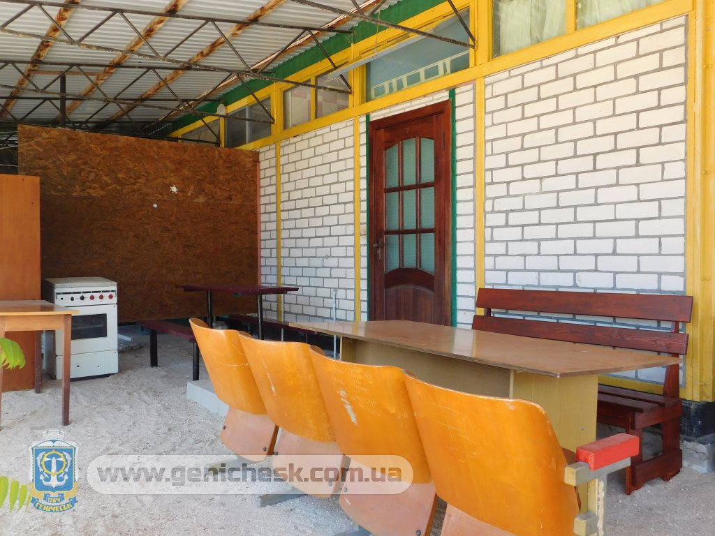 Возле каждого домика имеется стол со скамейками, лавочка, навес.