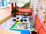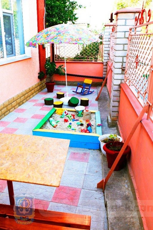 Есть небольшой детский уголок с песочницей.