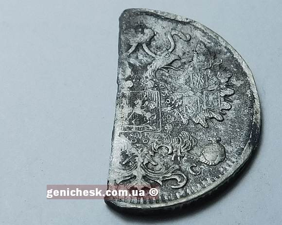 Еще одна интересная монета найденная на Арабатской стрелке. Это поздняя царская монета, то что называют "николашкино серебро" или просто и фамильярно "николашкина монета"