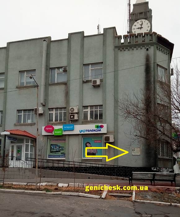 Установлена мемориальная табличка еще в советсткие времена на центральной улице Геническа - на здании Генического районного узла связи, сейчас это здание генического Укртелекома.
